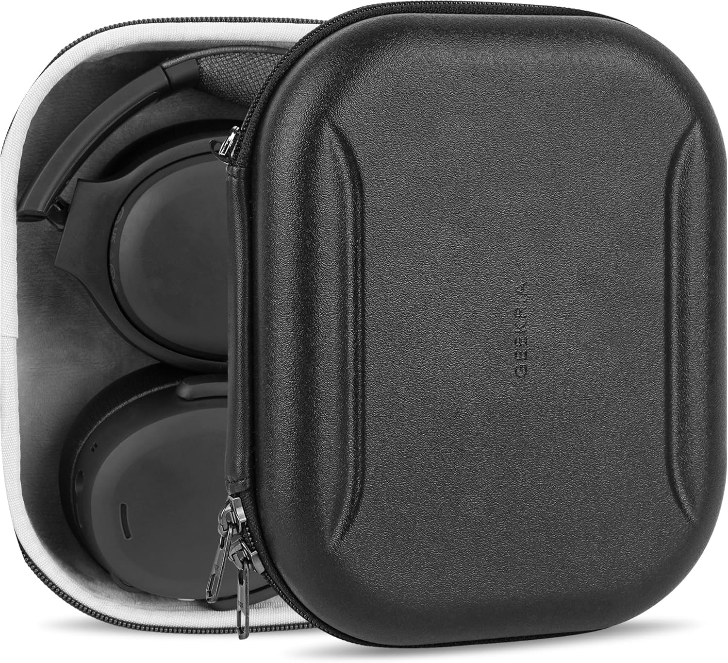 Your headphones will fit like a glove inside here. It's a hard case which keeps them protected, and they slide into the open top space within your carry-on bookbag like a charm everytime! This makes them easy to access on the plane. I keep a short charging cable and my FitFly case inside so everything has a home that I need once I'm in my airplane seat!